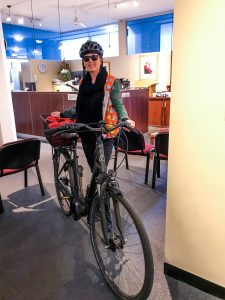 It was love at first sight – the Kalkhoff was a step-through with a generous sprung seat and ample carry basket at the rear, three power selections and a it was lovely charcoal gray. The top power setting meant that no hill was too steep for me to tackle.